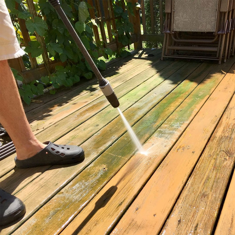 Wood and deck cleaning is designed to safely remove dirt, grime, mold, and algae while protecting the natural structure of the wood. We clean using sodium bicarbonate, a gentle yet effective cleaner that lifts buildup without damaging wood fibers or causing excessive wear. This method avoids harsh pressure that can splinter or scar the surface. After cleaning, we apply a post-treatment with oxalic acid to help neutralize the wood, brighten its natural color, and prevent it from drying out. This process restores the wood’s appearance, helps maintain proper moisture balance, and prepares the surface for sealing or staining if needed. Overall, professional wood cleaning extends the life of decks and wooden surfaces while keeping them looking clean, healthy, and well maintained.